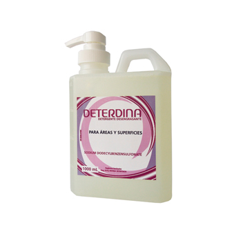 DETERDINA | Producto indicado para la limpieza de todas las superficies previo al proceso de desinfección. Compatible con todo tipo de desinfectantes, detergente neutro desengrasante y desincrustante para áreas y superficies.